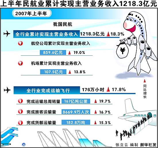 上半年民航業(yè)實現(xiàn)主營業(yè)務(wù)收入1218.3億元