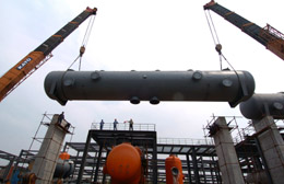 中國(guó)石化天津100萬(wàn)噸/年乙烯及配套項(xiàng)目中的6萬(wàn)噸/年回收裝置重75噸、長(zhǎng)22.4米的反應(yīng)器日前順利吊裝就位。據(jù)介紹,總投資270億元的中國(guó)石化天津100萬(wàn)噸/年乙烯及配套項(xiàng)目計(jì)劃在2009年9月投產(chǎn)運(yùn)行。 |