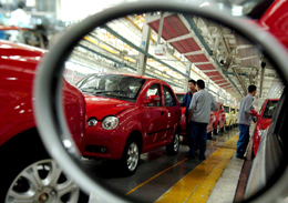 奇瑞QQ成為近些年來中國市場最為暢銷的小型車。圖為技術(shù)人員正在檢測(cè)剛下線的汽車。新華社記者:陶明