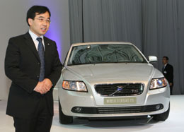 沃爾沃汽車公司近日在北京舉行新款沃爾沃S40轎車中國市場上市活動。由重慶長安福特馬自達(dá)汽車公司生產(chǎn)的新款S40包括T5、2.4i智雅版和2.4i智尚版三款車型。其中,新款T5車型采用無鑰匙駕駛控制系統(tǒng),增加了轎車的時(shí)尚感和科技含量。圖為沃爾沃轎車技術(shù)人員在介紹新款沃爾沃S40轎車。