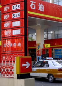 從11月1日0時開始,中國的油價再次上調(diào),北京地區(qū)的93號汽油每升從原來的4.90元提高到5.34元,97號汽油從5.22元提高到5.68元。當(dāng)天,北京宣武區(qū)一加油站的油價顯示牌上顯示上調(diào)后的油價。新華社記者:羅曉光 攝