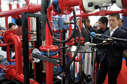 日前,2007年中國(guó)國(guó)際燃?xì)饧夹g(shù)與設(shè)備展覽會(huì)在南京國(guó)際展覽中心開(kāi)幕,國(guó)內(nèi)外約150家參展企業(yè)展示了燃?xì)廨斉洹⒖刂、檢測(cè)、存儲(chǔ)、應(yīng)用、管理等方面的新產(chǎn)品、新設(shè)備、新技術(shù)和新材料。圖為與會(huì)者在參觀一家企業(yè)展示的壓縮天然氣減壓裝置。 |