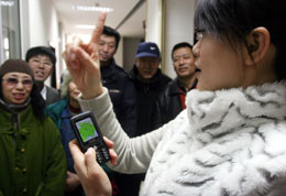 日前,沈陽市殘疾人服務(wù)熱線為聾人開通求助、咨詢等手機(jī)短信服務(wù)。聾人用戶只需向服務(wù)中心發(fā)送指定短信號碼,就會得到所需要的法律、低保等方面的信息幫助。圖為沈陽殘疾人服務(wù)熱線的工作人員為聾人講解短信服務(wù)相關(guān)知識。