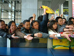 近日舉行的杭州不動(dòng)產(chǎn)交易會(huì)上冷冷清清。圖為一位來逛杭州不動(dòng)產(chǎn)交易會(huì)的市民在樓盤廣告前小憩。本報(bào)記者:王定昶 攝 |