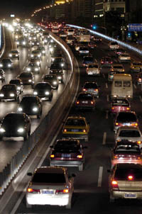 2007年北京市機動車保有量突破300萬輛。圖為北京二環(huán)路上浩浩蕩蕩的車流。新華社發(fā)