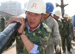 福建龍海市投資500多萬元,建設(shè)人民中路地下電纜工程。春節(jié)在即,電力工程隊(duì)加班加點(diǎn)奮戰(zhàn)施工,力爭(zhēng)早日完工。圖為供電公司電力工程隊(duì)正在人民東路鋪設(shè)電纜。