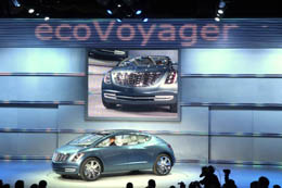 克萊斯勒公司的ecoYoyager概念車在北美車展上全球首次亮相。此款概念車是四門四座乘用車,其動(dòng)力是由鋰離子電池和氫燃料電池提供的,借助于燃料電池所提供的動(dòng)力可以行駛300英里(約合483公里)。在此次車展上,克萊斯勒首次推出三款概念車,分別為克萊斯勒ecoVoyager,吉普Renegade和道奇ZEO,三款概念車以電力或混合動(dòng)力為驅(qū)動(dòng)能源,體現(xiàn)了未來汽車的環(huán)保趨勢。新華社記者:張巖
