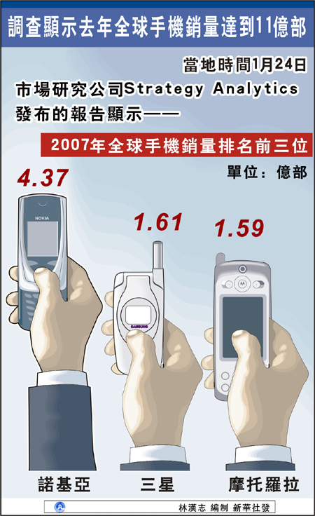 調(diào)查顯示去年全球手機銷量達(dá)到11億部[圖]