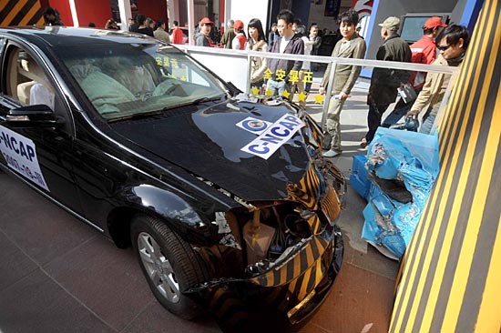 | 中國(guó)汽車安全主題巡展3月15日在北京啟程,本次巡展活動(dòng)為期三個(gè)月,主要有安全汽車展覽、安全論壇等活動(dòng),包括了向消費(fèi)者介紹汽車碰撞試驗(yàn)、交通安全和汽車安全問(wèn)題等內(nèi)容。觀眾正仔細(xì)觀察一家企業(yè)擺放的經(jīng)過(guò)碰撞實(shí)驗(yàn)的汽車。 | |