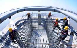 總投資額13.79億元的天津港30萬噸級原油碼頭工程正在加緊建設(shè)中,目前已累計完成建設(shè)投資7.4億元,碼頭13.5公里長的輸油管線已全部安放就位,計劃2008年9月初投入試運營。據(jù)介紹,天津港30萬噸級原油碼頭泊位總長468米,可?10萬噸級至30萬噸級大型原油船舶,年設(shè)計吞吐能力2000萬噸,不僅為中石化天津100萬噸乙烯項目提供配套服務(wù),還將為華北四大煉油企業(yè)提供服務(wù)。圖為施工人員為全長13.5公里的碼頭輸油管進行配套設(shè)施建設(shè)。 |