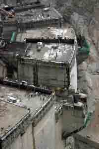 位于青海省貴德縣與貴南縣交界黃河干流之上的拉西瓦水電站,動(dòng)態(tài)投資達(dá)149億元,是黃河流域裝機(jī)容量最大(4200兆瓦)、大壩最高(最大壩高250米)、單機(jī)容量最大(單機(jī)容量700兆瓦的水輪發(fā)電機(jī)組6臺(tái))的水電站。 該電站預(yù)計(jì)2011年6月竣工,建成后將是黃河流域乃至中國(guó)北方發(fā)電量最多、單位千瓦成本最低的水電站,每年能提供102億度電的清潔能源。圖為緊張施工的拉西瓦水電站建設(shè)現(xiàn)場(chǎng)。 |