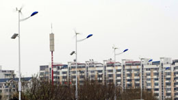 一種風(fēng)能與太陽能相結(jié)合的新型路燈日前在天津市南開區(qū)梅苑路試運(yùn)行。據(jù)悉,每盞路燈都橫扛著一個(gè)小風(fēng)車,攔腰還托舉著一塊太陽能電路板,白天小風(fēng)車和太陽能電路板將風(fēng)能和光能轉(zhuǎn)化成電能,儲(chǔ)存到埋在地下的蓄電池里,夜間自動(dòng)給路燈供電,節(jié)能又環(huán)保。