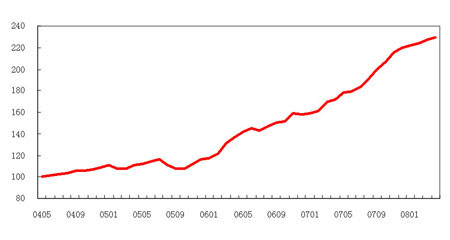 2008年4月,中原(北京)領(lǐng)先指數(shù)為229點(diǎn),環(huán)比上漲1.11%。據(jù)北京中原三級(jí)市場(chǎng)研究部對(duì)監(jiān)測(cè)樓盤統(tǒng)計(jì)可知,4月份北京中高檔二手房成交價(jià)格為13844.27元/平方米。同時(shí),北京中高檔二手房買賣成交量環(huán)比3月份有5.65%的小幅回落。由此可見(jiàn),北京中高檔二手商品房市場(chǎng)在4月份呈現(xiàn)出量降價(jià)升的態(tài)勢(shì)。