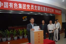 四川汶川地震牽動著中國有色集團全體共產黨員的心,他們踴躍交納“特殊黨費”,支援災區(qū)建設。短短半個小時,集團公司總部和在京企業(yè)422名黨員自愿交納特殊黨費40.5643萬元。圖為集團總經理、黨委副書記羅濤,黨委書記、副總經理張克利交納抗震救災“特殊黨費”。王長明