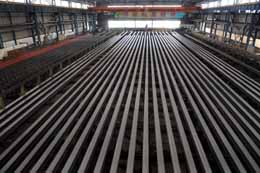 圖為等待出產(chǎn)的H型鋼材。