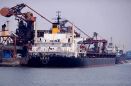 中國最大的輸煤港口群河北秦皇島港、黃驊港、唐山港年煤炭吞吐量超過3億噸,裝船量占全國69%。根據(jù)日前通過的《河北省沿海港口布局規(guī)劃》,這種“一煤獨(dú)大”格局將被打破,在未來十年內(nèi)三大港口將在繼續(xù)承擔(dān)“北煤南運(yùn)”重要通道的基礎(chǔ)上,向原油、鐵礦石、液體化工品、糧食、集裝箱等多領(lǐng)域拓展。圖為一艘輪船停泊在秦皇島港碼頭裝貨。