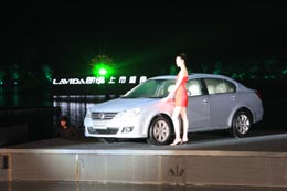 圖為在西湖浮臺(tái)上亮相的朗逸轎車(chē)。