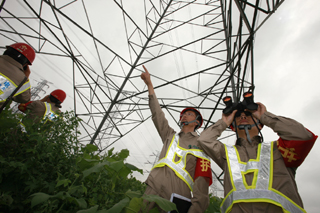 天津市電力公司500千伏變電站、線路進(jìn)入奧運(yùn)保電期,高壓供電公司全員上崗?fù)度氡k娮o(hù)線工作。