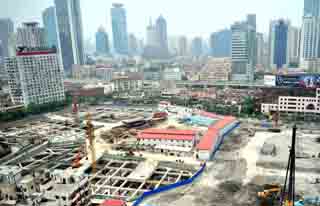 據(jù)上海統(tǒng)計(jì)局?jǐn)?shù)據(jù)顯示,1至7月,上海市房地產(chǎn)開發(fā)投資770.39億元,增長7.6%。圖為上海市中心一處正在建設(shè)中的商品房工地。
