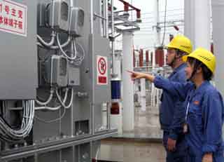 四川省江油市220千伏大康變電站日前舉行竣工投產(chǎn)儀式,這標(biāo)志著國(guó)家電網(wǎng)四川省電力公司受損設(shè)施原地重建工作全面完成,轉(zhuǎn)入規(guī)劃重建階段。汶川大地震導(dǎo)致四川省電力公司35千伏及以上變電站停運(yùn)171座,包括配網(wǎng)線路在內(nèi)10千伏及其以上線路停運(yùn)2769條,造成公司系統(tǒng)財(cái)產(chǎn)損失106.5億元。圖為四川江油市大康變電站職工正在檢查設(shè)備運(yùn)行情況。 |