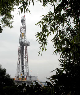 中國石化試氣作業(yè)隊工人在宣漢清溪鎮(zhèn)對新清溪1井進(jìn)行投產(chǎn)作業(yè)施工