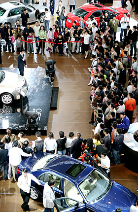 | 10月12日,2008南京國際汽車展覽會在南京國際展覽中心落下帷幕。本屆車展歷時5天,來自國內(nèi)外53個整車品牌的近400輛乘用車參展,眾多小排量、經(jīng)濟環(huán)保型乘用車型在車展上受到消費者歡迎。王新