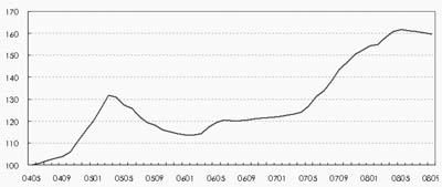 2008年9月,中原(上海)領(lǐng)先指數(shù)為159點(diǎn),樣本成交均價為18294元/平方米,環(huán)比下跌0.52%;同時二手房成交量也繼續(xù)大幅萎縮,環(huán)比上月減少了20%左右。總體來說,9月上海二手房市場繼續(xù)呈現(xiàn)量價齊跌的態(tài)勢。