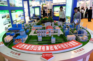首屆中國國際循環(huán)經(jīng)濟(jì)成果交易博覽會日前在青島舉行,來自國內(nèi)外一大批世界領(lǐng)先的循環(huán)經(jīng)濟(jì)技術(shù)和項(xiàng)目紛紛亮相。據(jù)了解,本屆“循博會”主題為“發(fā)展循環(huán)經(jīng)濟(jì),建設(shè)資源節(jié)約型和環(huán)境友好型社會”,旨在通過展會平臺,全面推廣和應(yīng)用能源資源節(jié)約與環(huán)境保護(hù)技術(shù)與裝備,加快循環(huán)經(jīng)濟(jì)項(xiàng)目與資金對接,促進(jìn)國內(nèi)外循環(huán)經(jīng)濟(jì)技術(shù)交流合作,深化循環(huán)經(jīng)濟(jì)理念。圖為觀眾在參觀一企業(yè)循環(huán)經(jīng)濟(jì)示意模型。 |