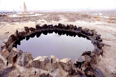新疆克拉瑪依市黑油山一處油池。本報記者 :沙達提 攝