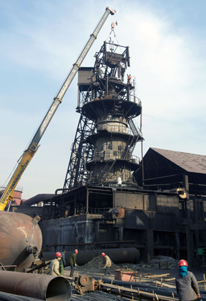 為貫徹落實(shí)國(guó)家節(jié)能減排方針,淘汰落后產(chǎn)能,改善大氣環(huán)境,河北邢臺(tái)開(kāi)始拆除兩座220立方米高爐,此次拆除可有效改善當(dāng)?shù)丨h(huán)境質(zhì)量。圖為12月23日邢臺(tái)市龍海鋼鐵集團(tuán)的一座高爐設(shè)施被拆除。