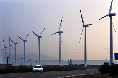 山東省風(fēng)能資源豐富,且經(jīng)濟(jì)發(fā)達(dá),對能源需求量也較大。風(fēng)電項因此成為山東省新能源領(lǐng)域利用外資的新亮點(diǎn)。據(jù)統(tǒng)計,近年來,山東共引進(jìn)風(fēng)電外資項目12個,總裝機(jī)容量521MW,總投資7.1億美元,合同外資1.2億美元,實(shí)際使用外資6900萬美元。圖為記者于12月28日在山東榮成市濱海大道拍攝的“風(fēng)車陣”。