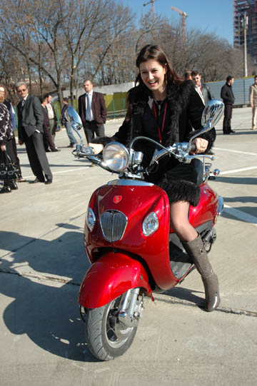 2月6日,在羅馬尼亞首都布加勒斯特世界貿(mào)易中心附近,一名當(dāng)?shù)亟?jīng)銷商正在試駕力奇公司推出的新車。當(dāng)天,羅馬尼亞華資力奇公司舉行09’新品推介會。力奇公司是當(dāng)?shù)刈畲蟮哪ν熊嚭吞ぐ遘嚱?jīng)銷商,去年銷量超過全國總銷量的三分之二。