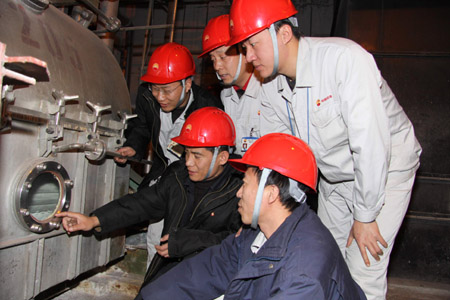 中國(guó)石油撫順石化腈綸廠全面實(shí)施精細(xì)管理,探索腈綸裝置優(yōu)質(zhì)低耗的工藝條件,節(jié)能減排成效顯著。去年,腈綸裝置三單之和同比下降2.29千克/噸,DMF消耗同比下降3.3千克/噸,12項(xiàng)主要經(jīng)濟(jì)技術(shù)指標(biāo)創(chuàng)同期最好水平。圖為該廠聚合車間生產(chǎn)技術(shù)人員正在認(rèn)真分析物料運(yùn)行狀況。
