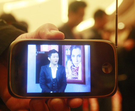 日前,“中國移動多媒體廣播上海商業(yè)運營啟動暨合作簽約儀式”在上海國際會議中心舉行,這是在簽約儀式現(xiàn)場拍攝的手機電視。中廣衛(wèi)星移動廣播有限公司與上海東方明珠集團正式簽約,東方明珠集團旗下的上海文廣手機電視有限公司成為上海地區(qū)CMMB手機電視的運營商。目前,CMMB手機電視的資費、節(jié)目等框架已基本成形,上海市民不久后就可以訂購和開通CMMB收視服務(wù)。