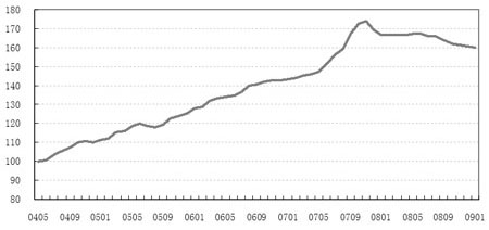 2009年1月,中原(廣州)領(lǐng)先指數(shù)為160點(diǎn),樣本成交均價(jià)為7927元/平方米,環(huán)比下跌0.4個(gè)百分點(diǎn),降幅有所收窄。成交量雖有所下降,但若排除假期的因素,成交依然比較活躍。
