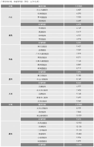 廣州市各區(qū)域、板塊均價(jià)(單位:元/平方米)