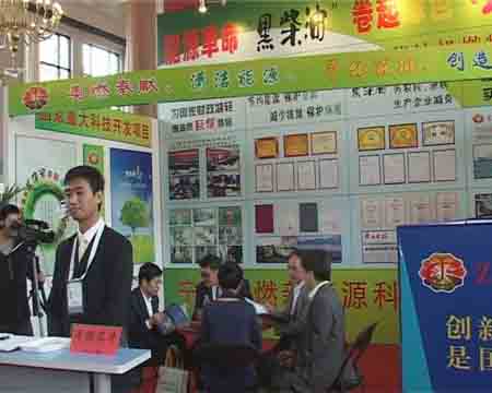圖為具有自主知識(shí)產(chǎn)權(quán)的高科技專利成果——“奧里油改性柴油機(jī)替代燃料”展區(qū)一角。