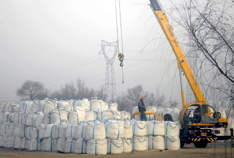 包鋼集團工人在裝載稀土下游原料。 |