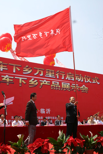 山東臨沂市市長張少軍接過了“汽車下鄉(xiāng)萬里行”活動的旗幟。 |
