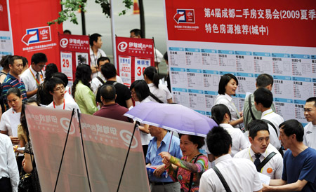 當日,第4屆成都二手房交易會(2009年夏季)在成都市二手房交易市場拉開帷幕。參展的20家成都品牌中介精選2萬余條二手房房源信息,為購房者提供購房選擇。
