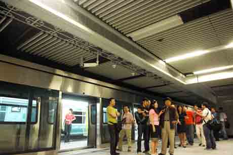 5月31日,軌道交通建設部門工作人員和媒體記者在北京地鐵4號線平安里站參觀站內設施。 當日,北京地鐵4號線開始車輛全線貫通測試,為9月底實現(xiàn)開通運營即達到最小間隔3分鐘做好準備。地鐵4號線南起公益西橋站,北至安河橋北站,全長約28公里,是繼地鐵5號線后又一條貫穿京城南北的交通大動脈。