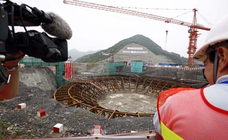 6月4日,媒體記者采訪浙江省臺州市中核集團(tuán)三門核電項(xiàng)目建設(shè)工地。 三門核電廠址位于浙江三門縣,三面環(huán)海,地理位置優(yōu)越。三門核電工程采用國外第三代壓水堆核電技術(shù)AP1000建造,規(guī)劃建設(shè)6臺125萬千瓦的核電機(jī)組,總裝機(jī)容量為750萬千瓦。
