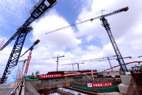 福建福清核電站2號(hào)機(jī)組核島反應(yīng)堆廠房施工工地(6月17日攝)。