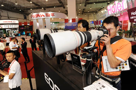 7月9日,觀眾正在體驗專業(yè)數(shù)碼相機(jī)。 當(dāng)日,2009中國國際消費(fèi)電子博覽會(SINOCES)在青島開幕,1509個國際、國內(nèi)消費(fèi)電子和家電企業(yè)帶來了各自最新的消費(fèi)電子產(chǎn)品參展。據(jù)了解,來自全球30多個國家和地區(qū)的700多家采購商帶來了意向采購訂單,采購規(guī)模有望創(chuàng)歷屆“電博會”之最。