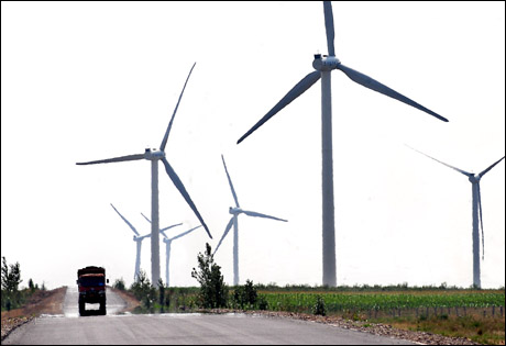 在內(nèi)蒙古自治區(qū)興安盟的境內(nèi),時(shí)常能夠看到公路兩旁矗立著一座座高大的風(fēng)力發(fā)電機(jī)。據(jù)統(tǒng)計(jì),截至5月底,內(nèi)蒙古自治區(qū)風(fēng)電并網(wǎng)已達(dá)315.28萬(wàn)千瓦,居全國(guó)第一。近年來(lái),風(fēng)電開(kāi)發(fā)不僅帶動(dòng)了當(dāng)?shù)氐南嚓P(guān)產(chǎn)業(yè),因風(fēng)電工程建設(shè)鋪設(shè)的公路,使當(dāng)?shù)氐慕煌l件也得到了很大改善,“風(fēng)車(chē)動(dòng),道路通”,成了草原新景觀。 |