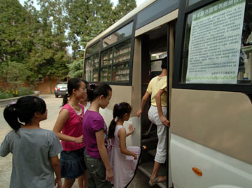 8月16日,安徽合肥市少年兒童圖書館的“汽車圖書館”滿載千余冊(cè)少兒讀物來到合肥高新區(qū)江河社區(qū)的工人子弟身邊,使遠(yuǎn)在郊區(qū)的廣大小讀者不用到圖書館就能享受到借閱圖書的方便。新華社發(fā)