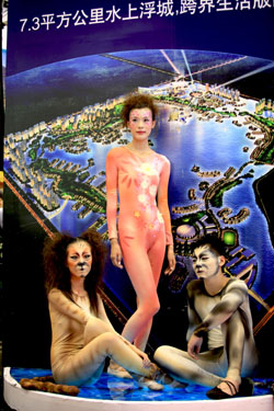 9月5日,在2009北京秋季房展會一房企展臺上,模特打扮成美女與野獸吸引觀眾的眼球。本屆展會匯集百余個國內(nèi)外的房地產(chǎn)項目參展,二手房經(jīng)紀(jì)、海外不動產(chǎn)投資、留學(xué)移民機(jī)構(gòu)等多個相關(guān)產(chǎn)業(yè)也集中亮相。新華社發(fā)(羅偉攝) |