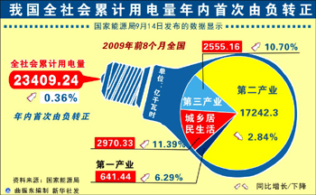 國家能源局14日發(fā)布8月份全社會用電量,1月至8月累計全社會用電量23409.24億千瓦時,同比增長0.36%,年內(nèi)首次由負轉(zhuǎn)正!袄塾嬘秒娏渴状螌崿F(xiàn)正增長,這是一個質(zhì)的變化。”國家電網(wǎng)北京經(jīng)濟技術(shù)研究院副院長胡兆光評價說。