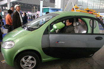 10月30日,在南京舉行的名特優(yōu)新產品展銷會上,觀眾在觀看現(xiàn)場展銷的一款最高時速70公里、可連續(xù)行駛120公里的電動汽車。新華社發(fā)(董金林攝) |