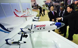 中國航空工業(yè)高調(diào)亮相北京航展。之前在香港亮相的國產(chǎn)大飛機(jī)C919模型等,引起廣泛關(guān)注。新華社記者 王建華 攝 |